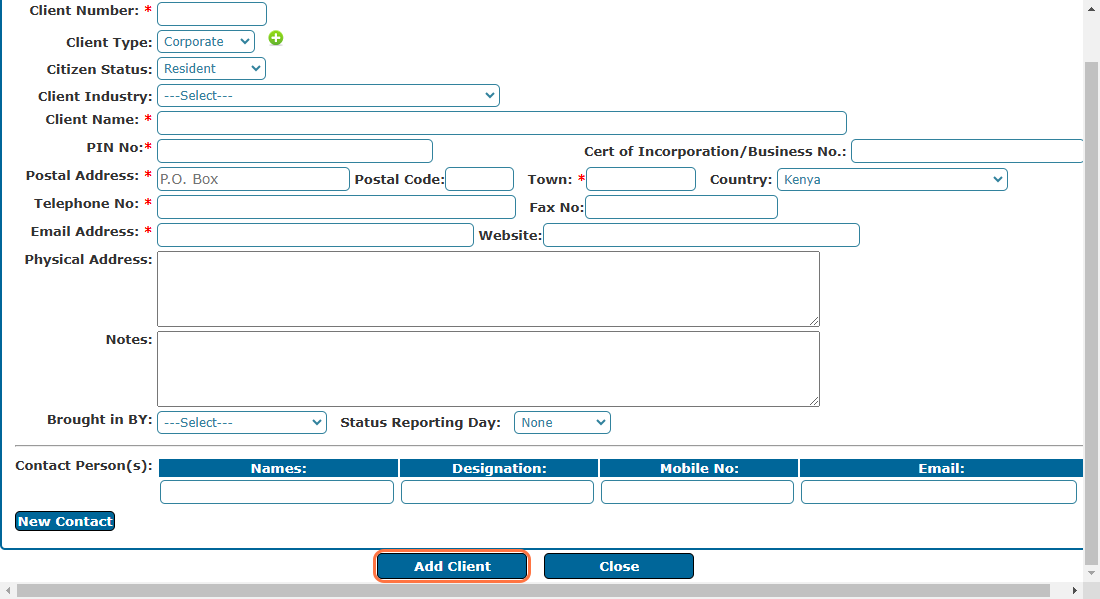 Client registration facilitates the seamless registration of new clients in our system and enhance your ability to track and manage client information effectively.