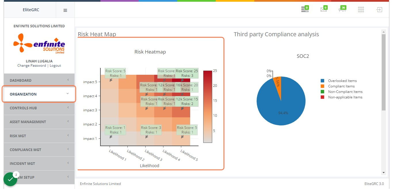 2. Click on "Organization" module