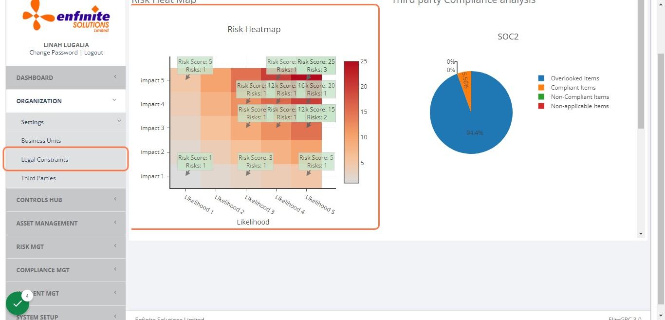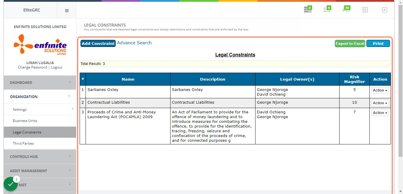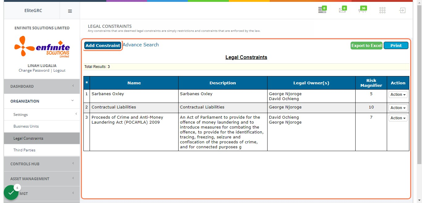 5. To view all the Legal Constraints captured in the system